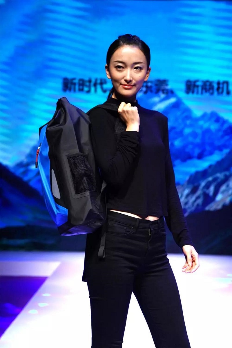 走秀主题是“益(一)路”向前,我司主推的防水包袋类新品已火热上市,该类产品采用PVC或600D加单/双面TPU材质,采用高频电压技术,最高防水等级可达到IPX7,适合游泳,漂流,徒步等各种户外及涉水运动,能更好地保护你的手机、相机、iPad、钱包、衣物等贵重物品,减少因雨水、泼水等带给您的烦恼。公司的产品不仅有着时尚的外观,流线的造型,集收纳、防水防尘等各种功能于一体,而且体积轻便,方便携带,能更大程度地减轻您出行的负担,让您更加轻松愉悦地享受户外生活。
